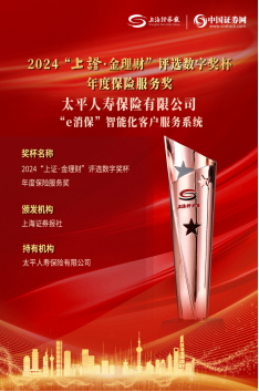 日前,由上海證券報(bào)·中國(guó)證券網(wǎng)主辦的2024“上證·金理財(cái)”評(píng)選頒獎(jiǎng)典禮正式舉辦。太平人壽憑借高質(zhì)量發(fā)展和踐行金融五篇大文章的優(yōu)異成果,在眾多金融品牌中脫穎而出,榮獲年度保險(xiǎn)保障品牌、年度保險(xiǎn)服務(wù)兩項(xiàng)大獎(jiǎng)。